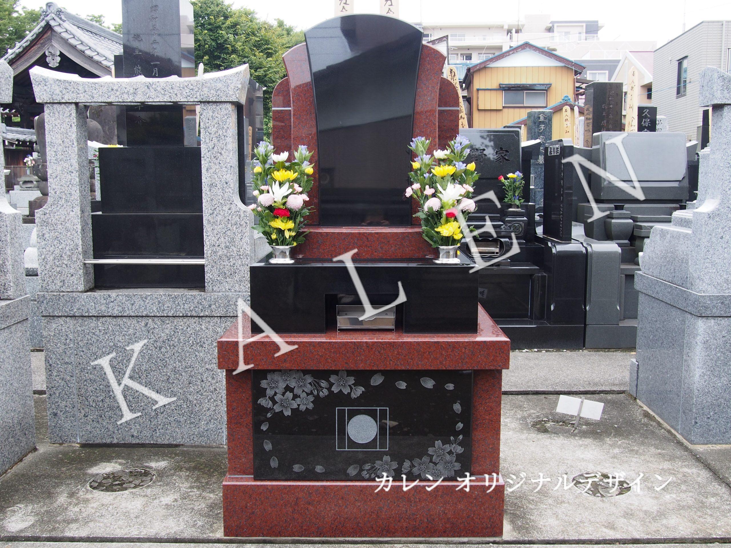 桜が流れるようなデザイン(墓石のカレン施工)