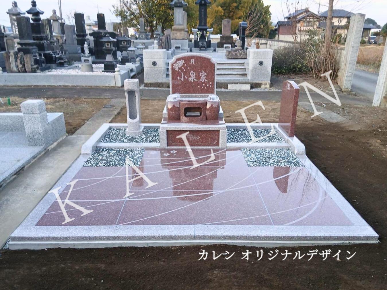 ピンク色・赤色の洋型墓石を建立|群馬県板倉町・岩田墓地にて 小泉様